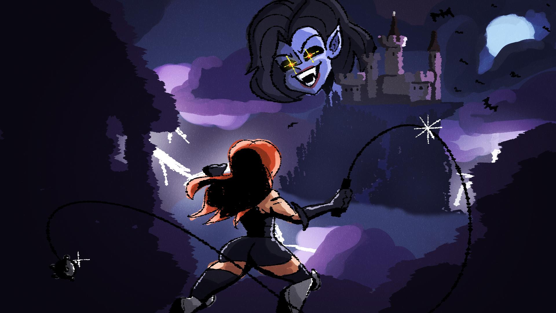 Torrential downpour falls as one lone adventurer sets off on her quest to slay the vampire.